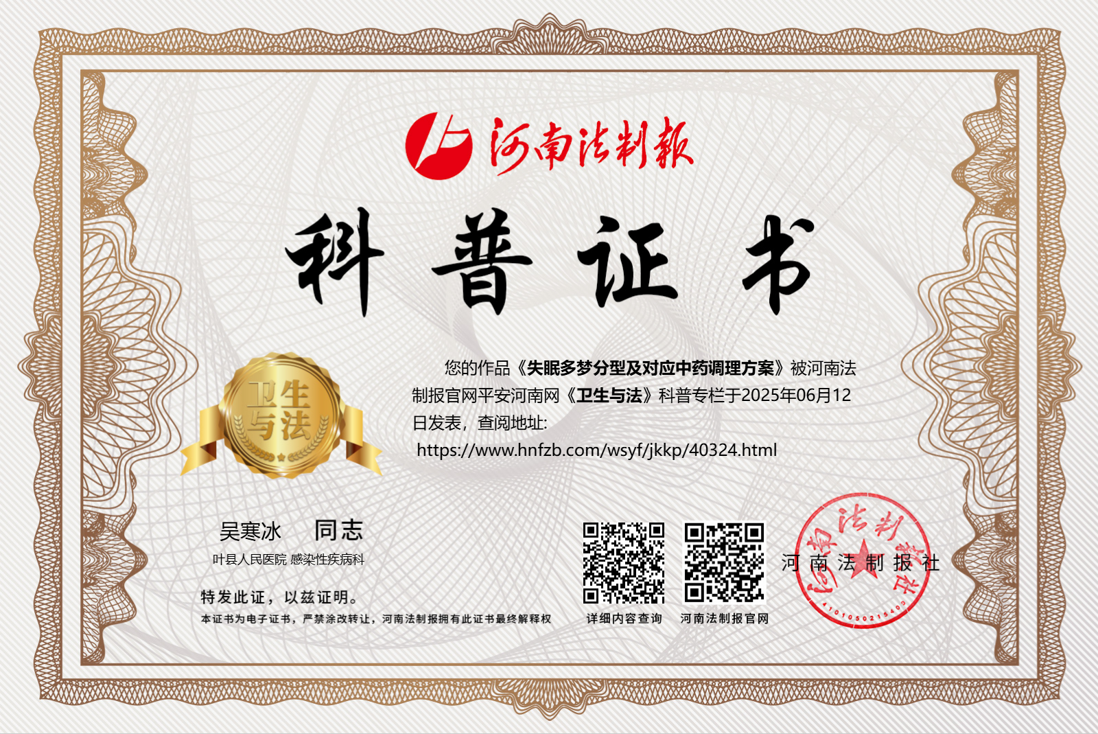 葉縣人民醫(yī)院 ?感染性疾病科 ?吳寒冰