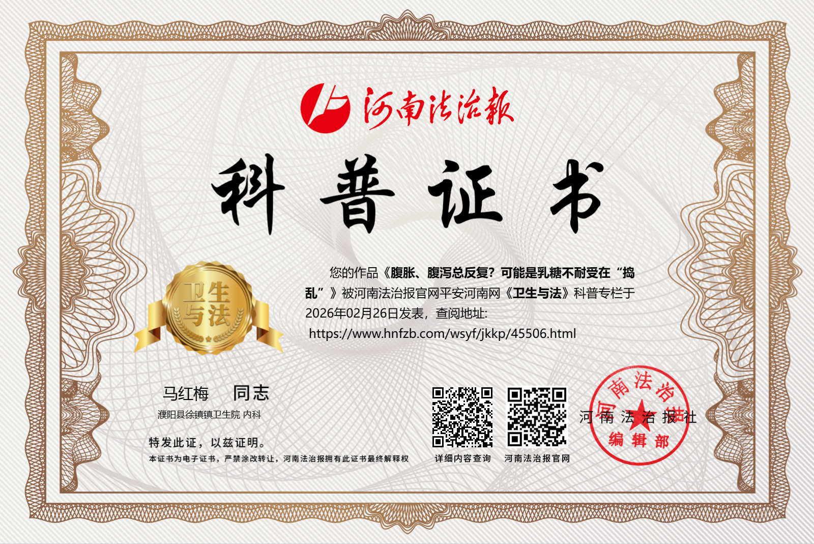 濮陽縣徐鎮鎮衛生院 ??內科 ?馬紅梅